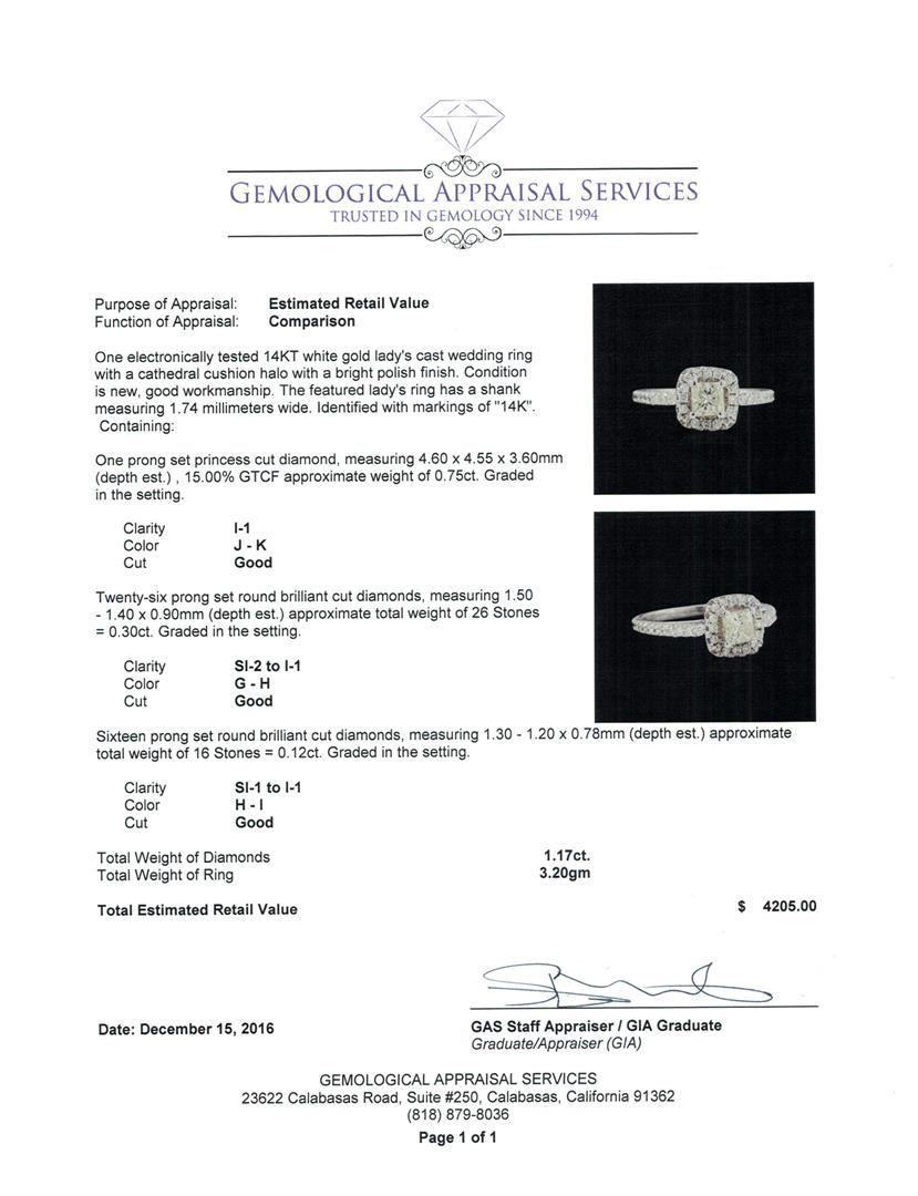 One ring featuring: 14KT white gold weighing 5.23 grams containing one diamond with a total weight of 0.75ct and 48 side diamonds with a total weight of 0.48ct.