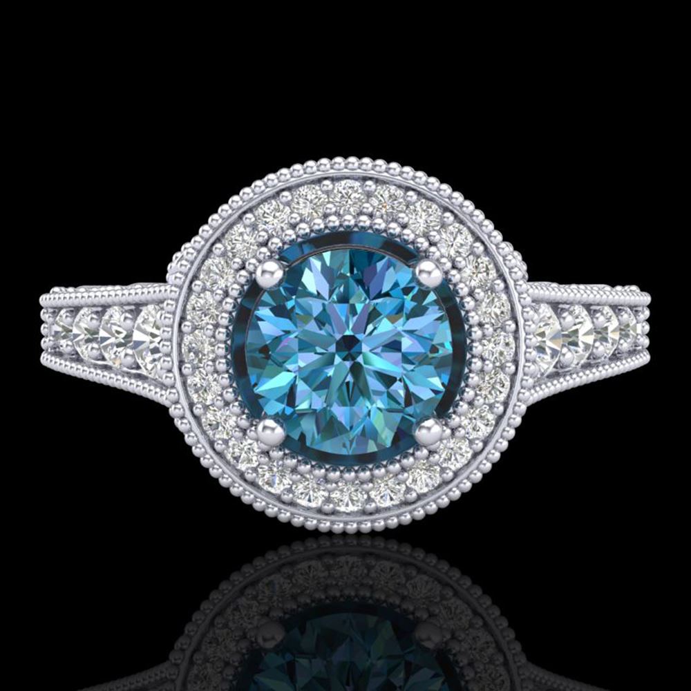SKU: 37691 ---- 1.12 ctw Fancy Intense Blue Diamond Art Deco Ring 18k White Gold