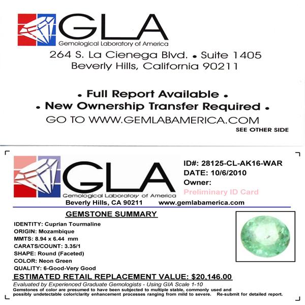 In the event that an item is listed as having an "Appraisal Estimate", this represents WAR's in-house estimate of what the item would appraise for at Gem Labs of America (GLA), Beverly Hills, CA. Actual appraisal of the item at GLA is the responsibility of the Bidder, however WAR may assist, at its discretion, in related logistics. WAR does provide the following guaranty (the "WAR 5% Loose Gem Guaranty") relative to Appraisal Estimate values of LOOSE GEMS: In the event that the GLA appraised value is not such an amount that the Bidder's winning bid is five percent (5%) or less of the GLA appraised value, then WAR, in it's discretion, will either refund such amount of the Bidder's winning bid and related charges so that the winning bid equals five percent (5%) of the GLA appraised value, or, instead issue a full refund on the item and reimburse the Bidder for the GLA appraisal fees. The Bidder may also opt to retain the item, in which case the WAR 5% Gem Guaranty shall not apply relative to the particular item.