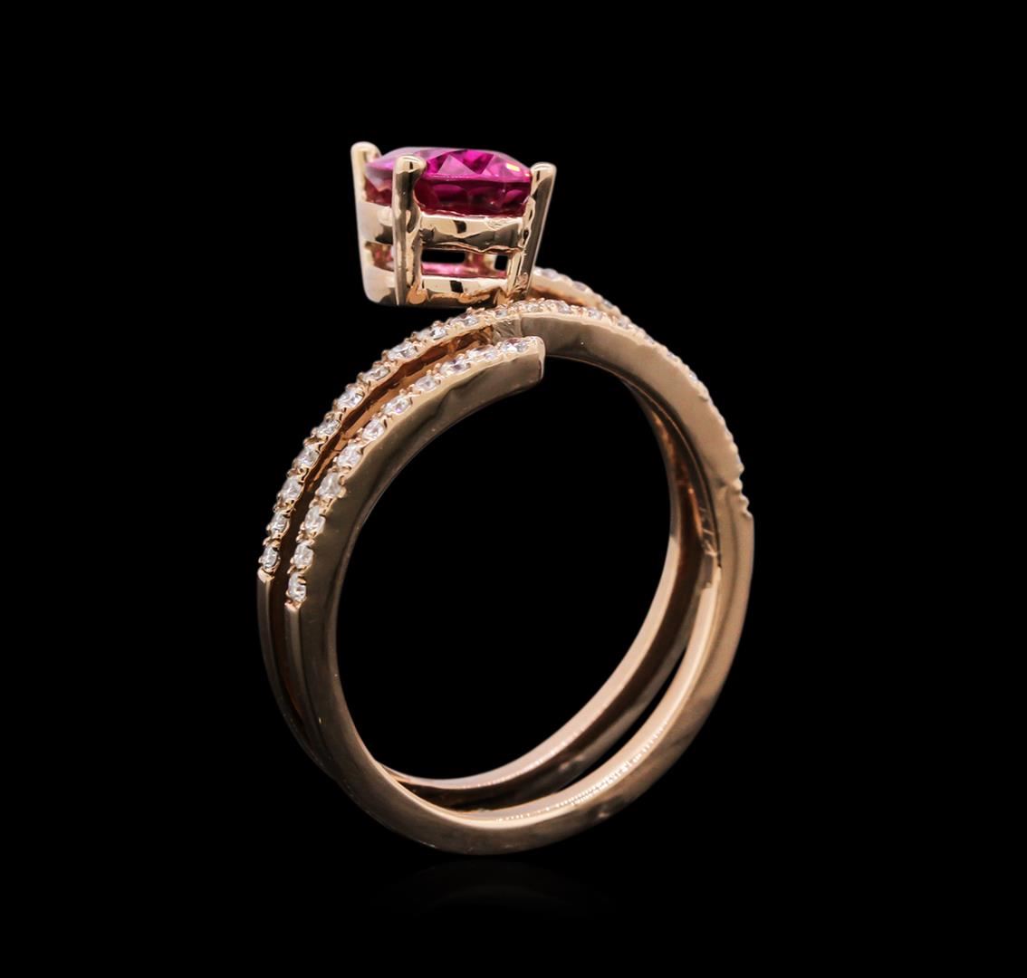 One ring featuring: 14KT rose gold weighing 3.88 grams containing one pink tourmaline with a total weight of 1.12ct and diamonds with a total weight of 0.28ct.