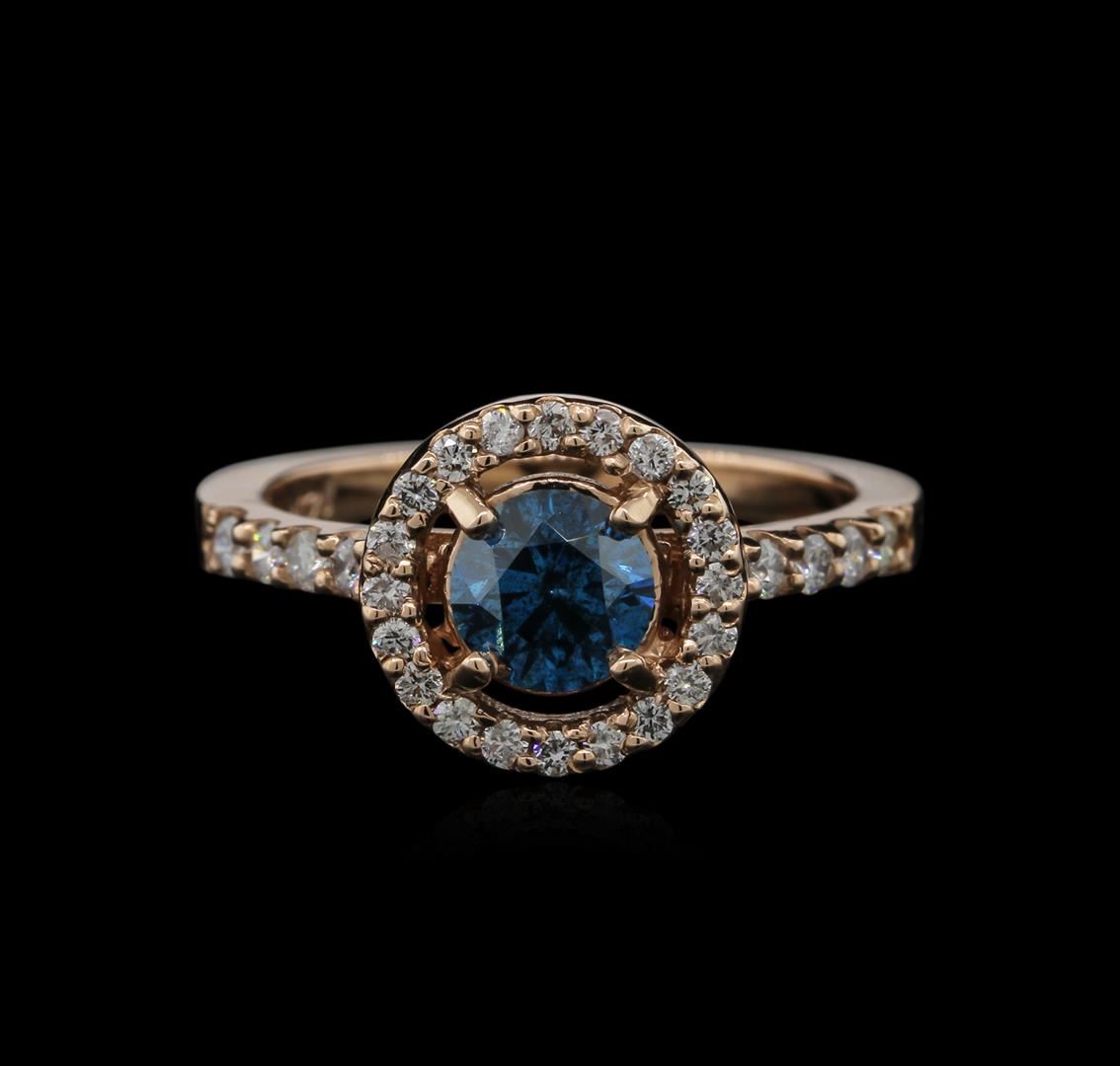 One ring featuring: 14KT rose gold weighing 3.98 grams containing one blue diamond center stone with a total weight of 0.72ct and 30 diamonds with a total weight of 0.40ct.