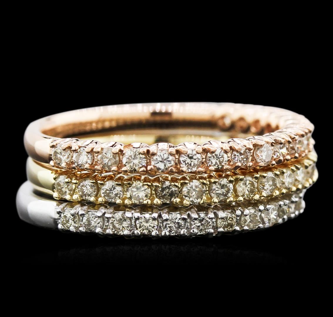 One ring featuring: 14KT yellow, white and rose gold weighing 6.40 grams containing 57 diamonds with a total weight of 1.12ct.