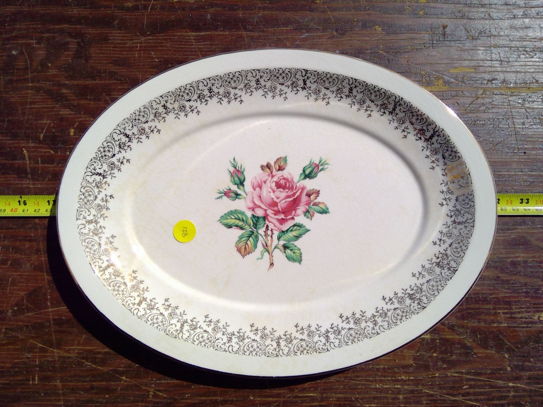 1 - 13.5" Oval Platter - Cornish Rose USA 22k Gold