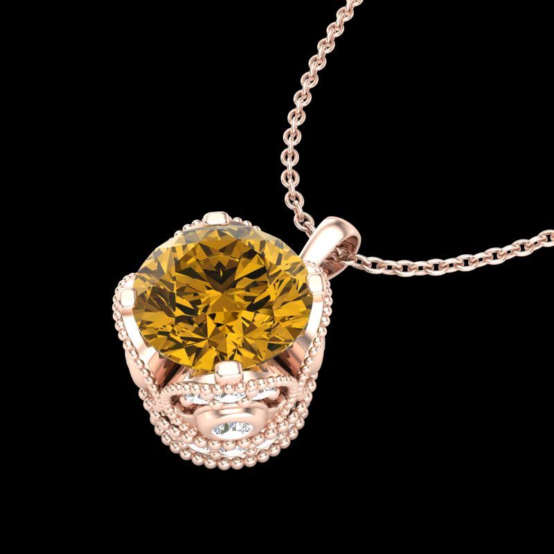 REF-136H4A -37428 ---- 1.13 CTW Intense Fancy Yellow Diamond Art Deco Stud Necklace 18K Rose Gold ---- Luxury Designer Brand NECKLACE Appraised at $8,250 Certificate Number US37428 18k Rose gold, NECKLACE Size is 16 Inches, NECKLACE measuring approx. Uniform, weighing in total approx. 3.5 grams. Made in the USA and is stamped 18k, Main stone 0.75 carat total weight containing 1 pieces of Intense Fancy Yellow color with SI quality Round shape cut Diamond , Stone #2 0.38 carat total weight containing 38 pieces of H-I color with VS/SI quality Round shape cut Diamond