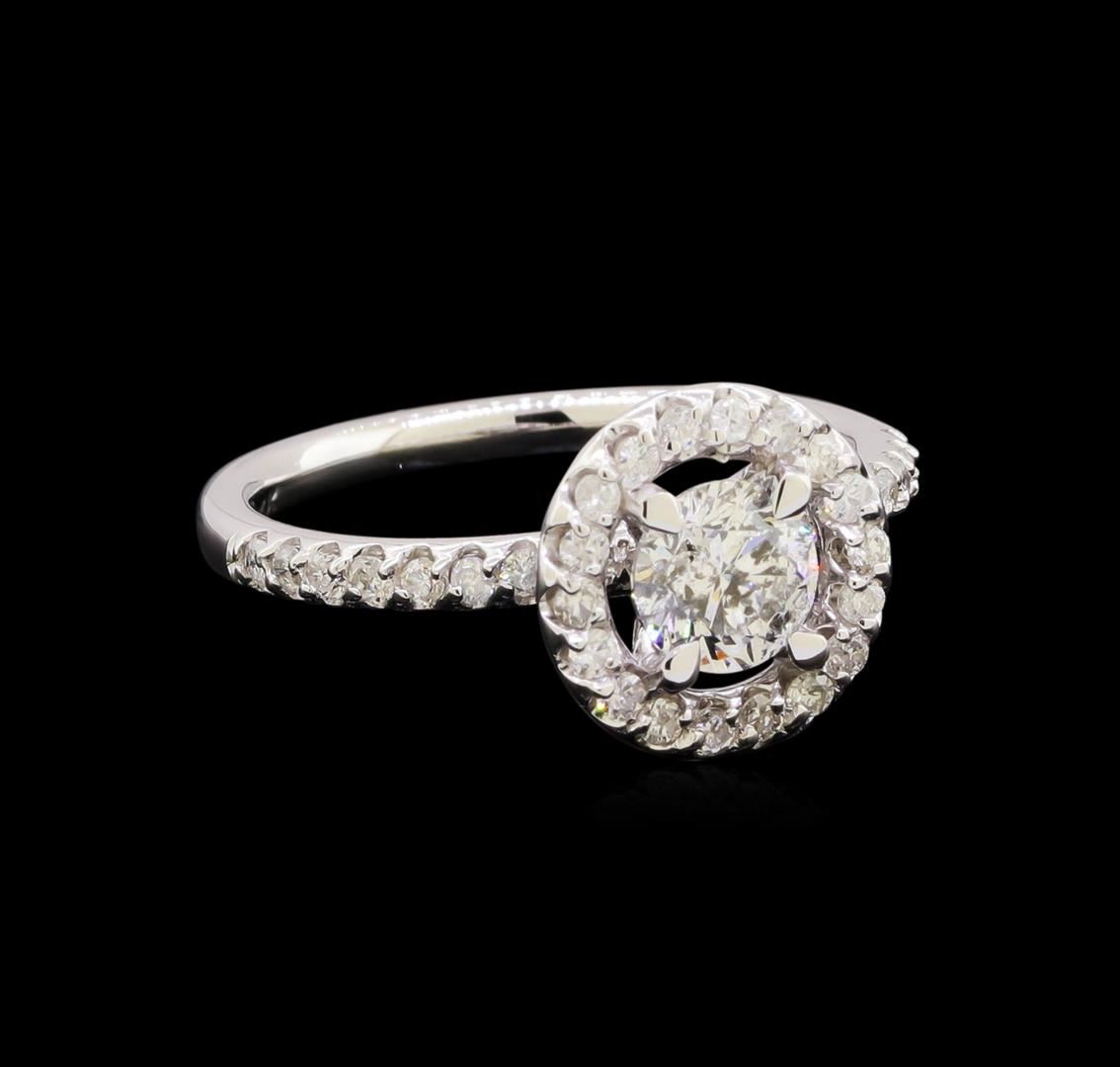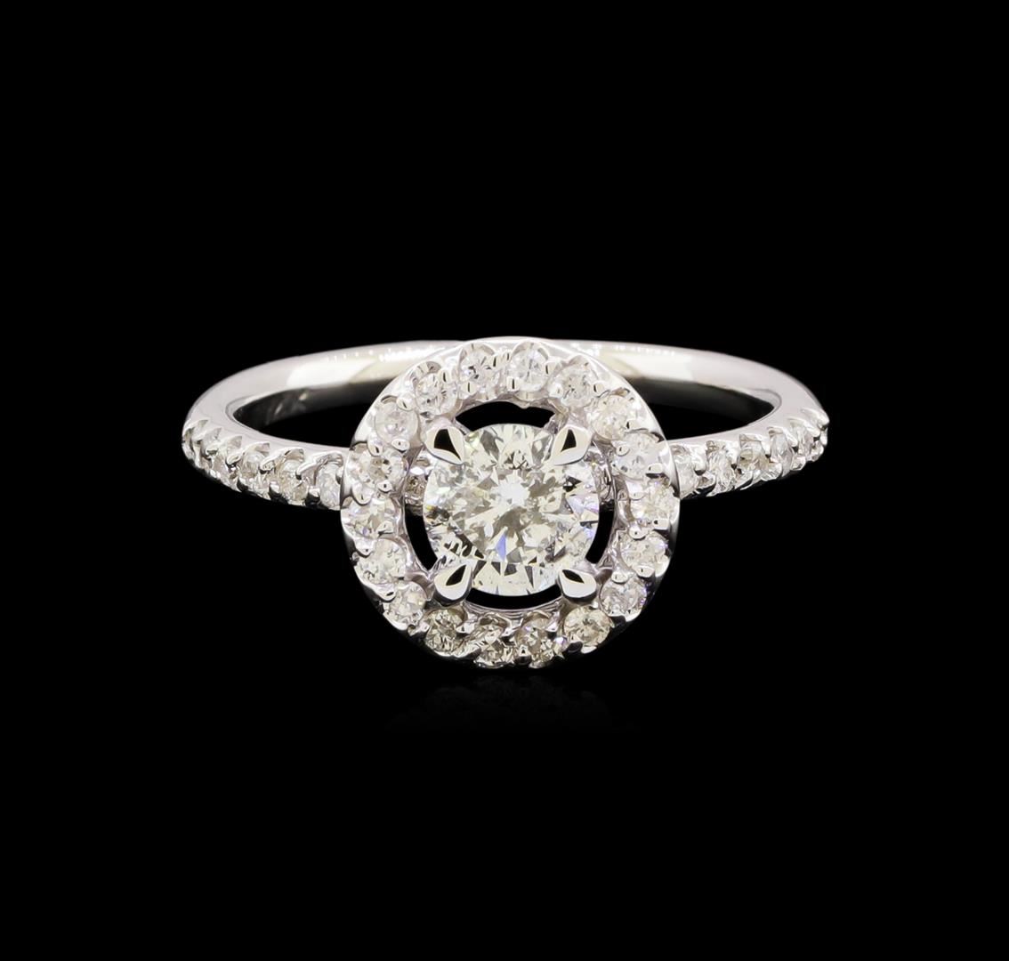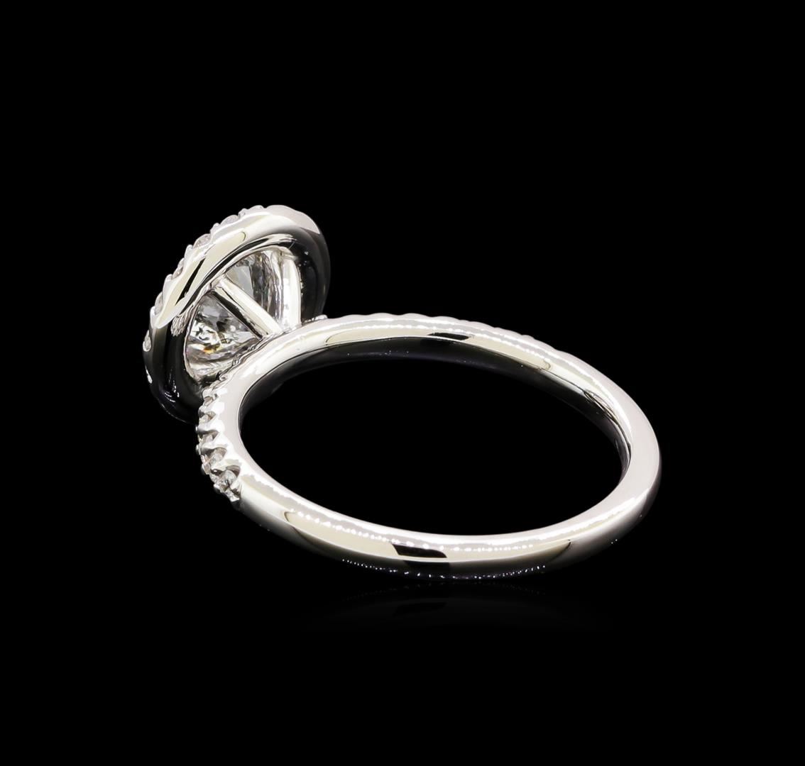 One electronically tested 14KT white gold lady's combination cast & assembled straight line wedding ring with a bright polish finish. The featured lady's ring has a shank measuring 1.80 millimeters in width. Identified with markings of "14K". Condition is new, good workmanship. Containing: One prong set round brilliant cut diamond, measuring 5.75 - 5.62 x 3.72mm (depth est.) approximate weight of 0.77ct. Graded in the setting. Clarity: I-1. Color: I. Cut Very Good Thirty-Four prong set round brilliant cut diamonds, measuring 1.40 - 1.30 x 0.85mm (depth est.) approximate total weight of 34 Stones = 0.36ct. Graded in the setting. Clarity: SI-2 to I-1. Color: H - I. Cut Good. Total Weight of Diamonds 1.13ct. Total Weight of Ring 3.40gm. GAS Appraised at $5,960.00.