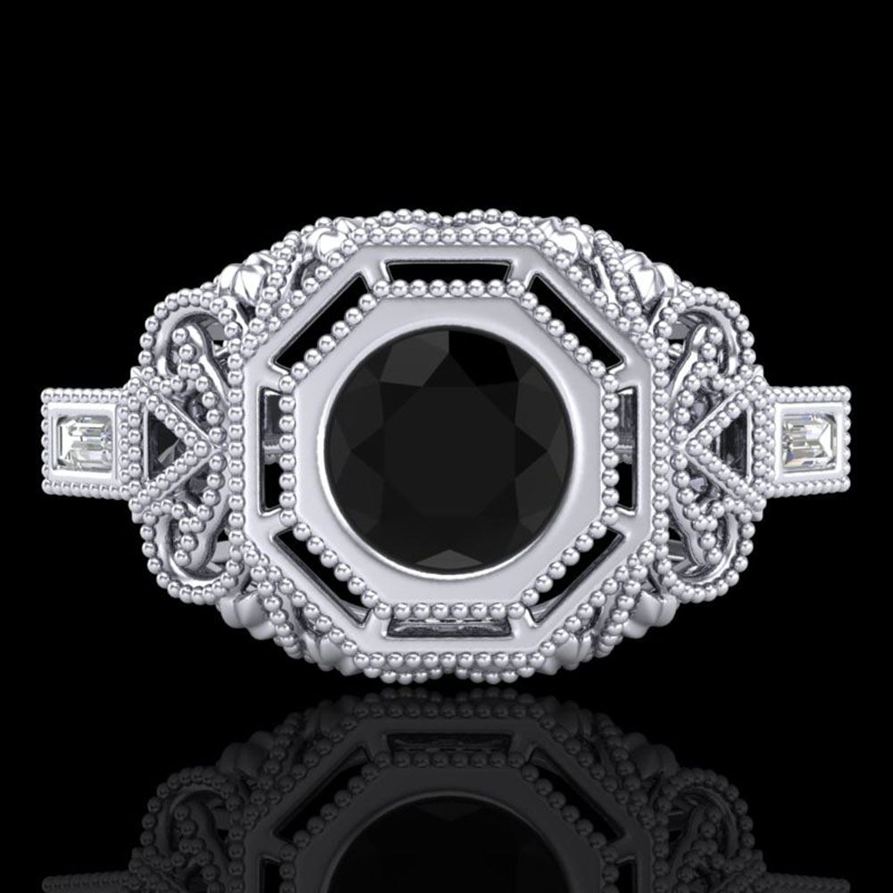REF-140K2Y - SKU: 37821 ---- 1.13 ctw Fancy Black Diamond Engagment Art Deco Ring 18k White Gold