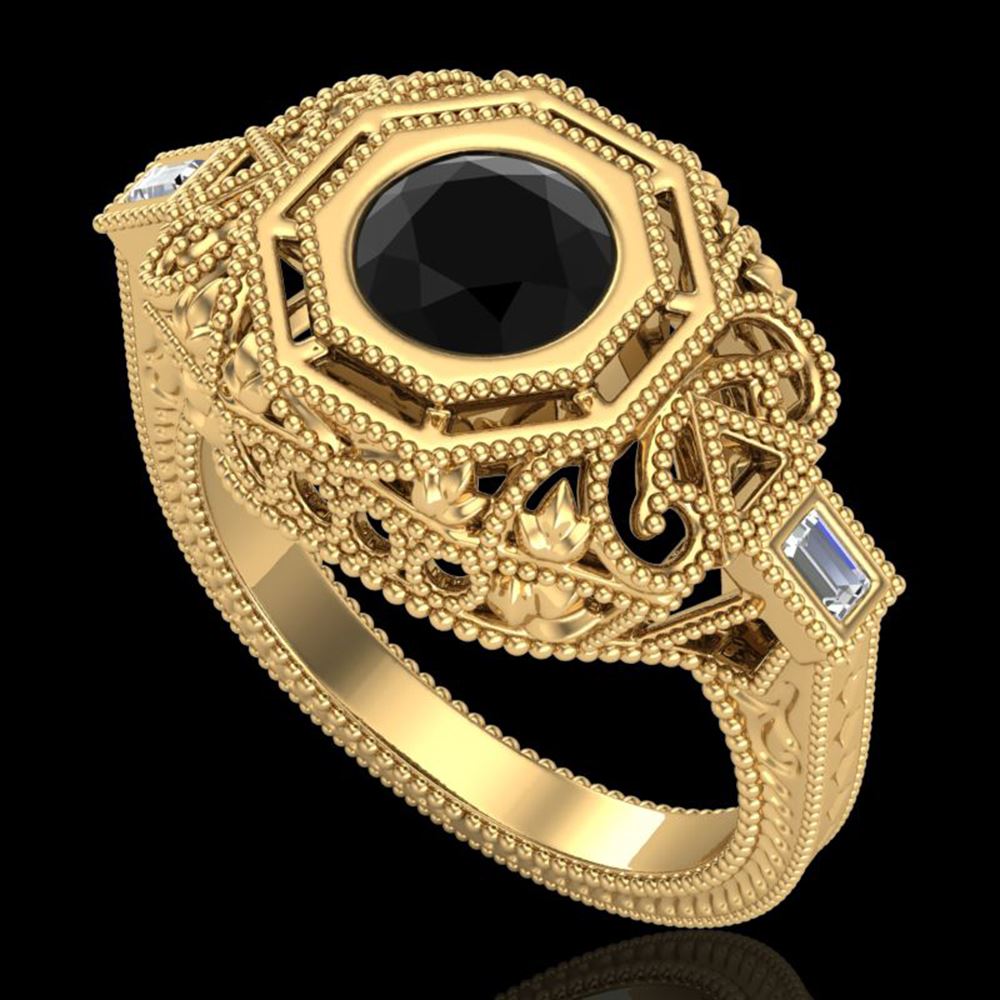 REF-140N2F - SKU: 37823 ---- 1.13 ctw Fancy Black Diamond Engagment Art Deco Ring 18k Yellow Gold