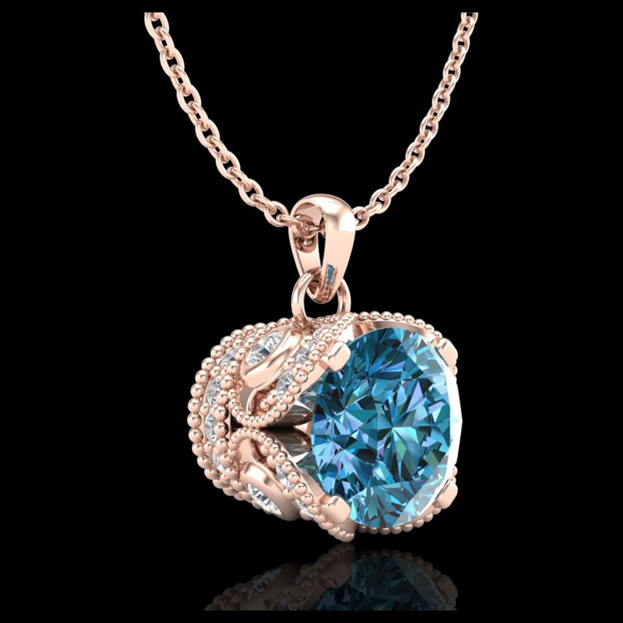 1.13 ctw Fancy Intense Blue Diamond Art Deco Necklace 18K Rose Gold