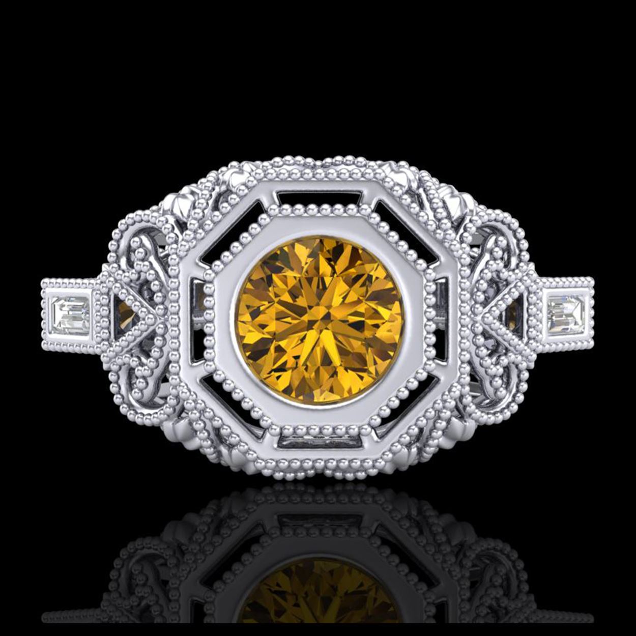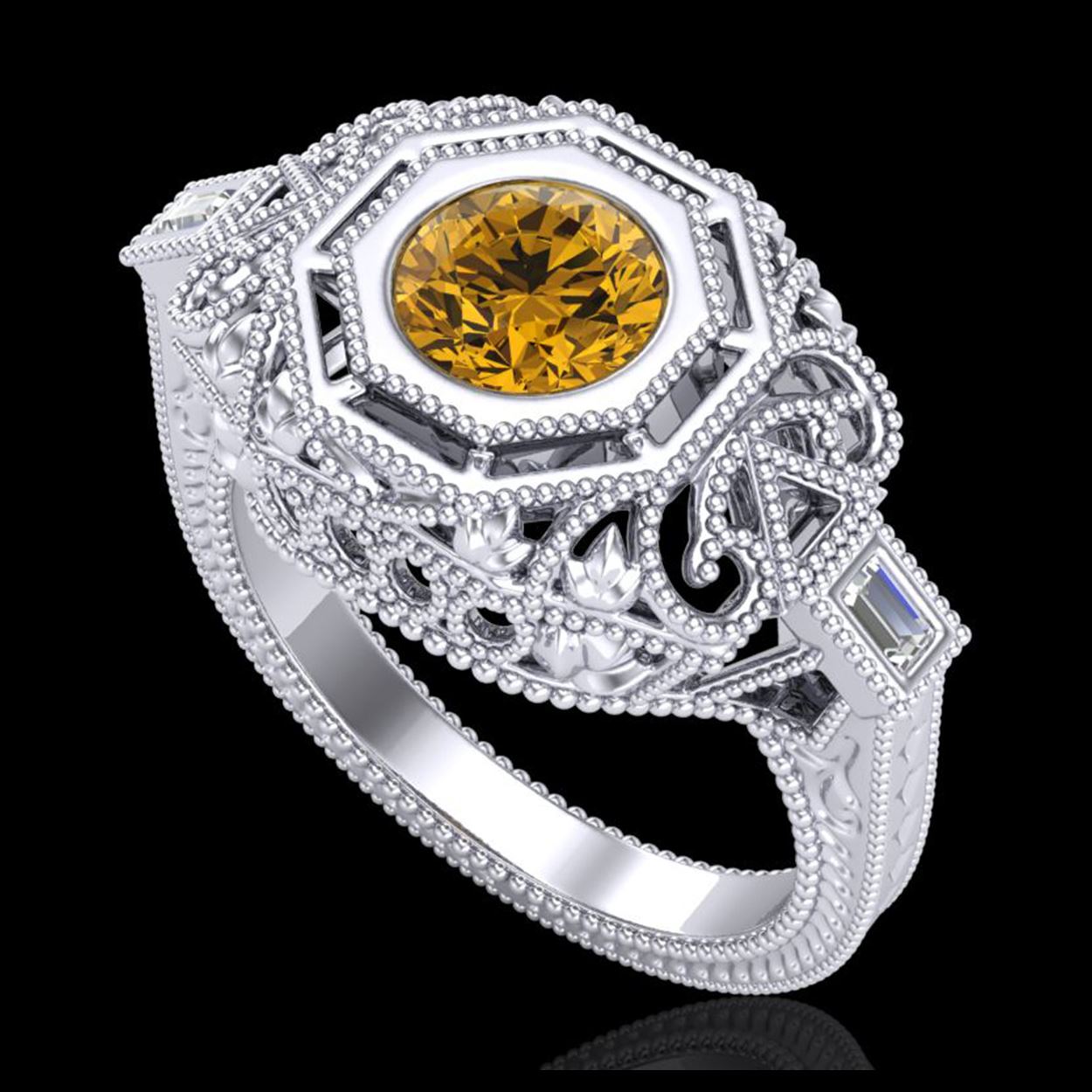 1.13 ctw Intense Fancy Yellow Diamond Art Deco Ring 18K White Gold