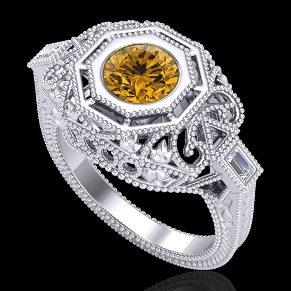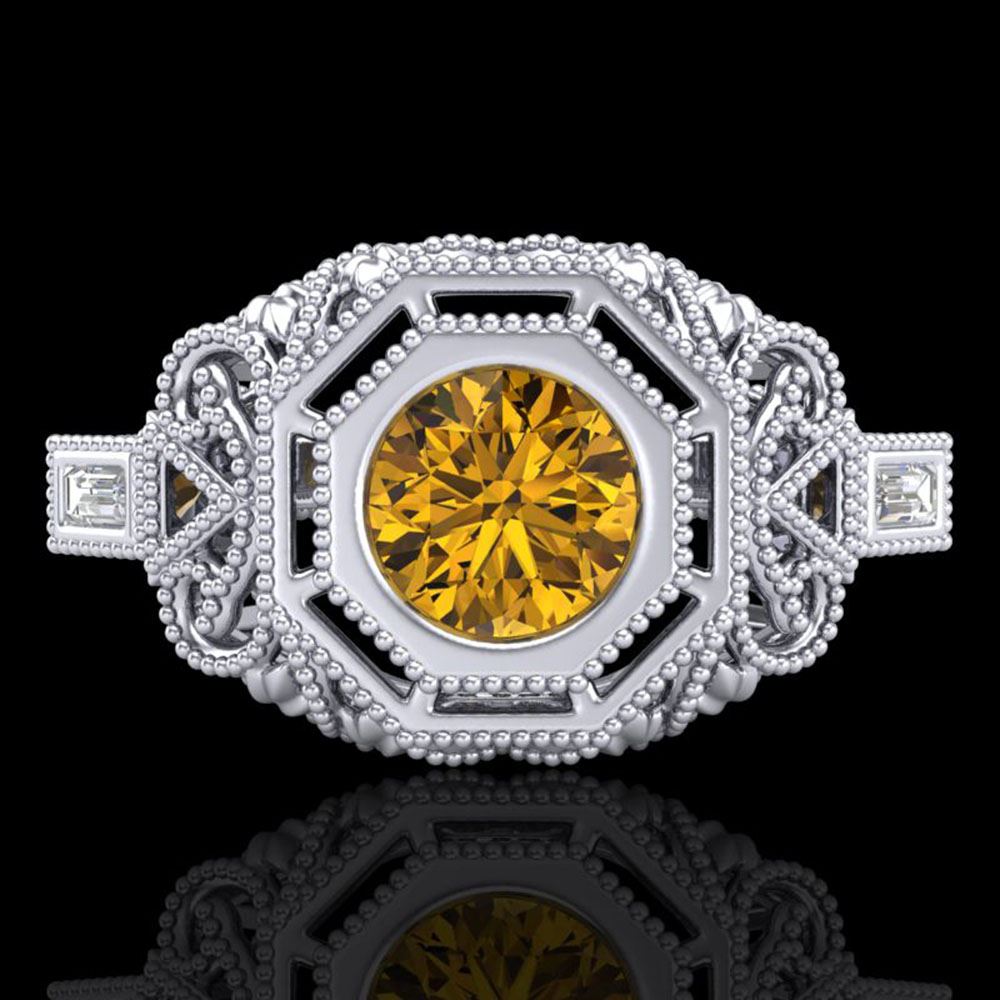 REF-309M3G - SKU: 37826 ---- 1.13 ctw Intense Fancy Yellow Diamond Art Deco Ring 18k White Gold