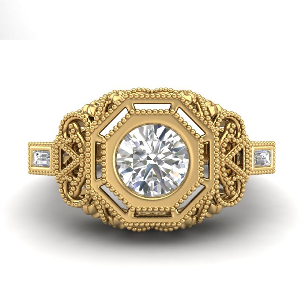 REF-360X2A - SKU: 37048 ---- 1.13 ctw VS/SI Diamond Solitaire Art Deco Ring 18k Yellow Gold