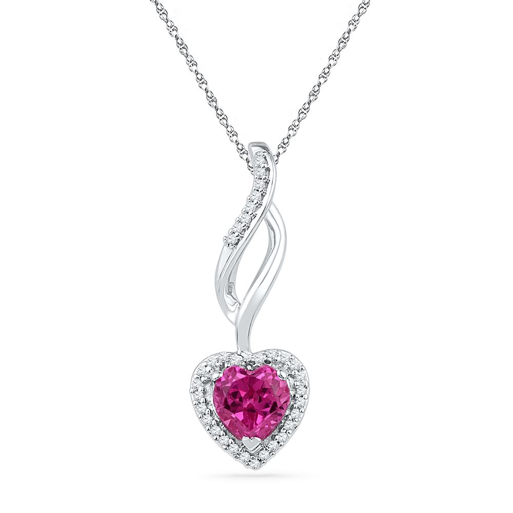 REF-12K2W- SKU: GD99769 ---- 1.14 CTW Created Ruby Solitaire Heart Pendant 10KT White Gold