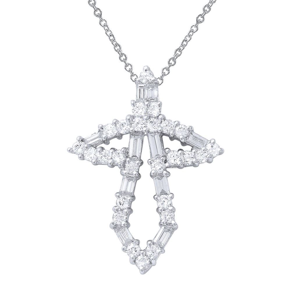 REF-115F8N - JF217161 ---- 1.14 CTW White Round Diamond & Baguette Necklace 18K White Gold