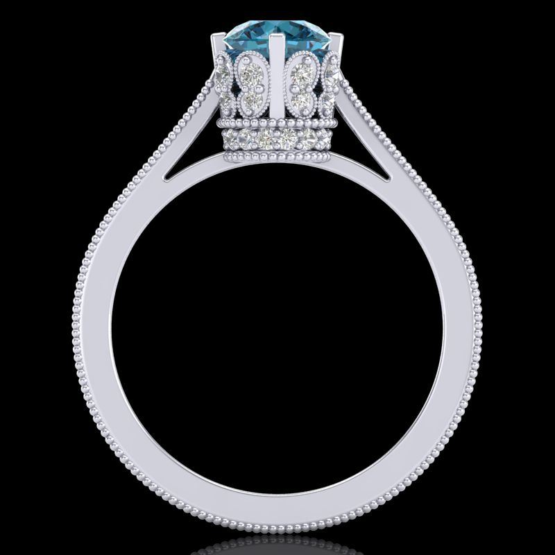 REF-136X4T -37341 ---- 1.14 CTW Fancy Intense Blue Diamond Solitaire Art Deco Ring 18K White Gold ---- Luxury Designer Brand Ring Appraised at $9,000 Certificate Number US37341 18k White gold, Ring Size is 7, Ring measuring approx. Uniform, weighing in total approx. 5 grams. Made in the USA and is stamped 18k, Main stone 0.77 carat total weight containing 1 pieces of Intense Fancy Blue color with SI quality Round shape cut Diamond , Stone #2 0.37 carat total weight containing 30 pieces of H-I color with VS/SI quality Round shape cut Diamond