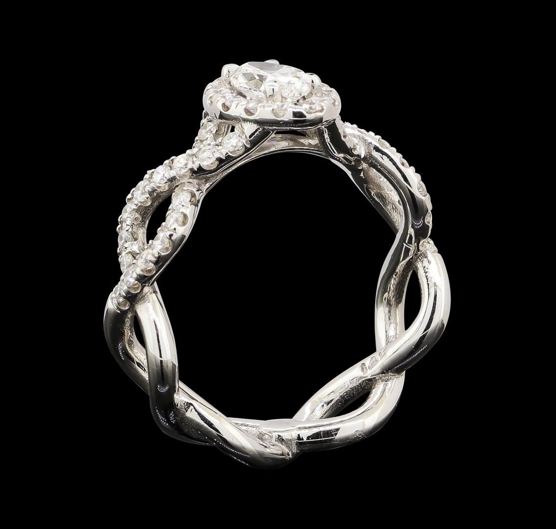 One electronically tested 14KT white gold lady's cast wedding ring with a overlapping split shank with a bright polish finish. The featured lady's ring has a shank measuring 3.40 millimeters wide. Identified with markings of '14K'. Condition is new, good workmanship. Containing: One prong set marquise shaped cut diamond, measuring 7.14 x 4.55 x 2.95mm (depth est.) approximate weight of 0.56ct. Graded in the setting. Clarity SI-2. Color: H Cut Good Forty-Six prong set round brilliant cut diamonds, measuring 1.50 - 1.45 x 0.92mm (depth est.) approximate total weight of 46 Stones = 0.58ct. Graded in the setting. Clarity SI-1 to SI-2. Color: G - H Cut Very Good. Total Weight of Diamonds 1.14ct.. Total Weight of Ring 5.10gm. GAS Appraised at $4,895.00.