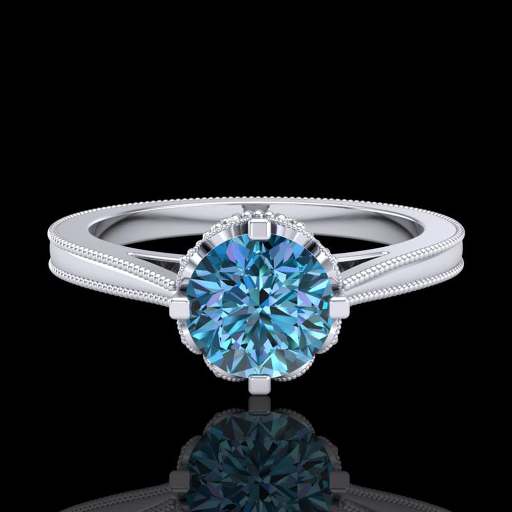 REF-156W4H - SKU: 37341 ---- 1.14 ctw Fancy Intense Blue Diamond Art Deco Ring 18k White Gold