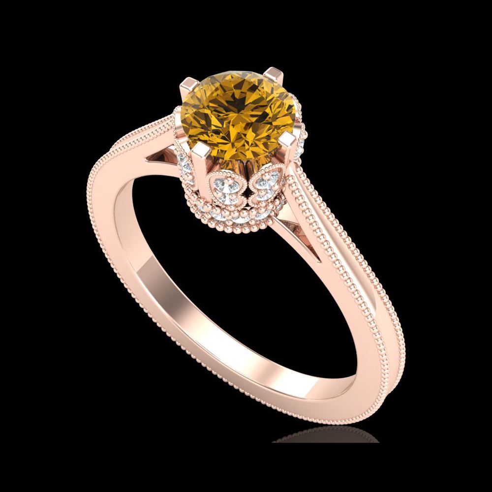 1.14 ctw Intense Fancy Yellow Diamond Art Deco Ring 18K Rose Gold