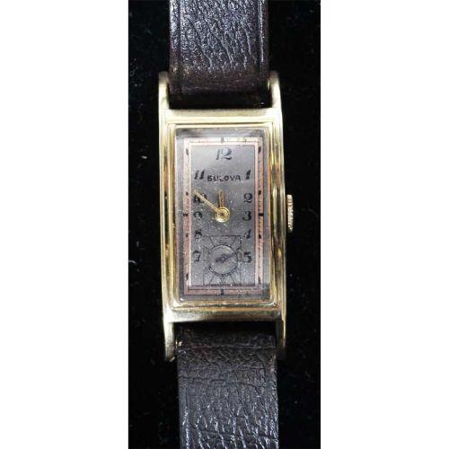 1 14K GOLD BULOVA CURVEX WRIST<BR>WATCH<BR>circa 1930 <BR>CONDITION REPORT: not running.<BR>PACKING AND SHIPPING - $20 excluding insurance within the Continental USA only (International shipping through 3rd party shipper. We recommend the Newtown UPS Store.)