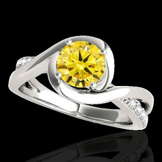 1.15 CTW Certified Si Fancy Intense Yellow Diamond Solitaire Ring 10K White Gold ---- Luxury Designer Brand Ring Appraised Retail Price at $10,800 ---- SKU Number US34842 10k White gold Ring Size is 7, Ring measuring approx. Uniform, weighing in total approx. 6 grams. Made in the USA and is stamped 10k, Main stone 1.00 carat total weight containing 1 pieces of Intense Fancy Yellow color with SI quality Round shape cut Diamond , Stone #2 0.15 carat total weight containing 10 pieces of H-I color with VS/SI quality Round shape cut