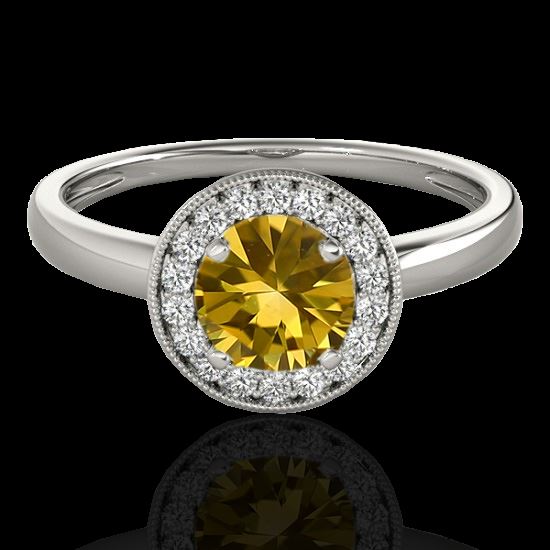 REF-152W8F -33470 ---- 1.15 CTW Certified Si/I Fancy Intense Yellow Diamond Solitaire Halo Ring 10K White Gold ---- Luxury Designer Brand Ring Appraised at $10,100 Certificate Number US33470 10k White gold, Ring Size is 7, Ring measuring approx. Uniform, weighing in total approx. 3.6 grams. Made in the USA and is stamped 10k, Main stone 1.01 carat total weight containing 1 pieces of Intense Fancy Yellow color with SI quality Round shape cut Diamond , Stone #2 0.14 carat total weight containing 18 pieces of H-I color with VS/SI quality Round shape cut Diamond