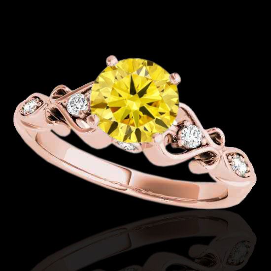 REF-156A4X -34818 ---- 1.15 CTW Certified Si Intense Yellow Diamond Solitaire Antique Ring 10K Rose Gold ---- Luxury Designer Brand Ring Appraised at $10,300 Certificate Number US34818  10k Rose gold,  Ring Size is 7, Ring measuring approx. Uniform, weighing in total approx. 4.1 grams. Made in the USA and is stamped 10k, Main stone 1 carat total weight containing 1 pieces of Intense Fancy Yellow color with SI  quality Round shape cut Diamond , Stone #2 0.15 carat total weight containing 8 pieces of H-I color with  VS/SI quality Round shape cut Diamond