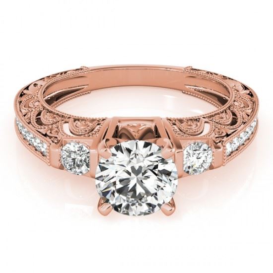 REF-224A5X -27280 ---- 1.15 CTW Certified VS/SI Diamond Solitaire Antique Ring 18K Rose Gold ---- Luxury Designer Brand Ring Appraised at $11,100 Certificate Number US27280 18k Rose gold, Ring Size is 7, Ring measuring approx. Uniform, weighing in total approx. 5.6 grams. Made in the USA and is stamped 18k, Main stone 0.77 carat total weight containing 1 pieces of H-J color with VS/SI quality Round shape cut Diamond , Stone #2 0.38 carat total weight containing 10 pieces of H-I color with VS/SI quality Round shape cut Diamond