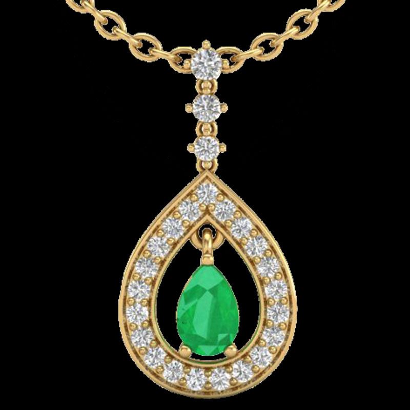 1.15 CTW Emerald & Micro Pave VS/SI Diamond Necklace Designer 14K Yellow Gold ---- Luxury Designer Brand Necklace Appraised Retail Price at $4,100  ---- SKU Number US23167 14k Yellow gold Necklace Size is 16 Inches, Necklace measuring approx. 1 1/8" X 1/2" , weighing in total approx. 3.2 grams. Made in the USA and is stamped 14k, Main stone 0.50 carat total weight containing 1 pieces of Intense Green color with AAA quality Pear shape cut Emerald , Stone #2 0.65 carat total weight containing 24 pieces of H-I color with VS/SI quality Round shape cut