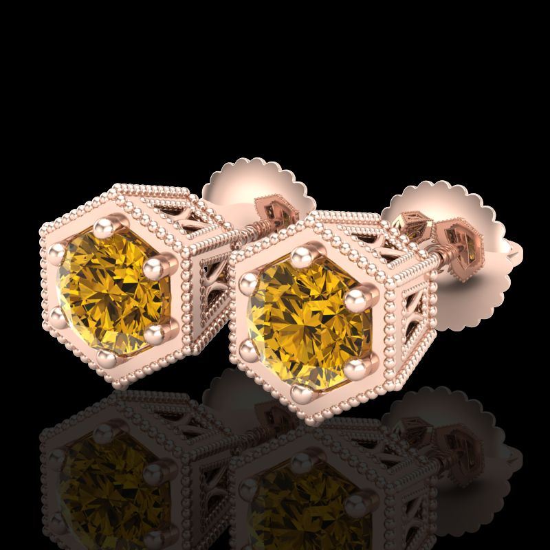 REF-138Y2K -38044 ---- 1.15 CTW Intense Fancy Yellow Diamond Art Deco Stud Earrings 18K Rose Gold ---- Luxury Designer Brand Earring Appraised at $8,350 Certificate Number US38044 18k Rose gold, Earring Size is Larger, Earring measuring approx. Uniform, weighing in total approx. 2 grams. Made in the USA and is stamped 18k, Main stone 1.15 carat total weight containing 2 pieces of Intense Fancy Yellow color with SI quality Round shape cut Diamond , Stone #2 carat total weight containing pieces of color with quality shape cut