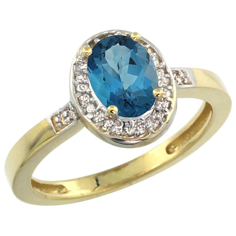 REF-38V3R - SKU: SC-CY405150 ---- 1.15 CTW London Blue Topaz & Diamond Ring 14K Yellow Gold