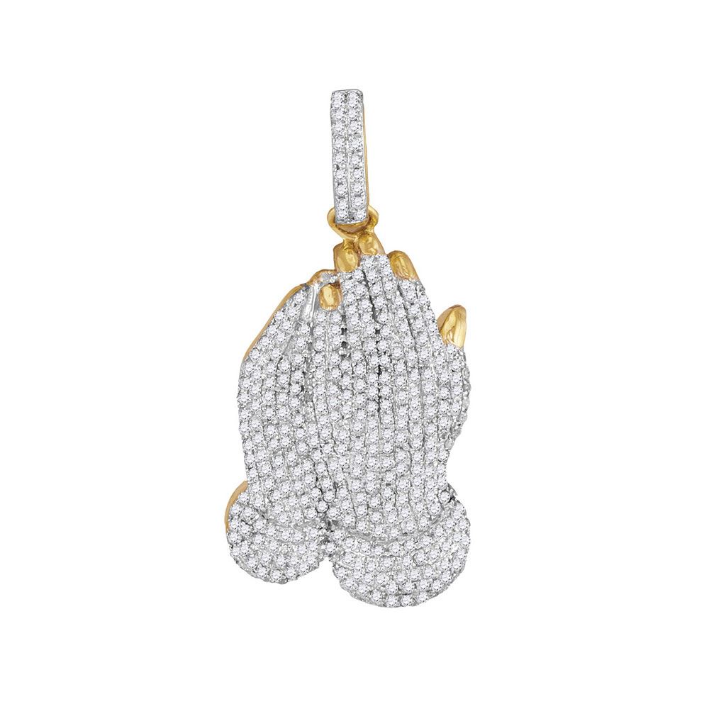 REF-57Y2X- SKU: GD111474 ---- 1.15 CTW Mens Diamond Praying Hands Prayer Charm Pendant 10KT Yellow Gold