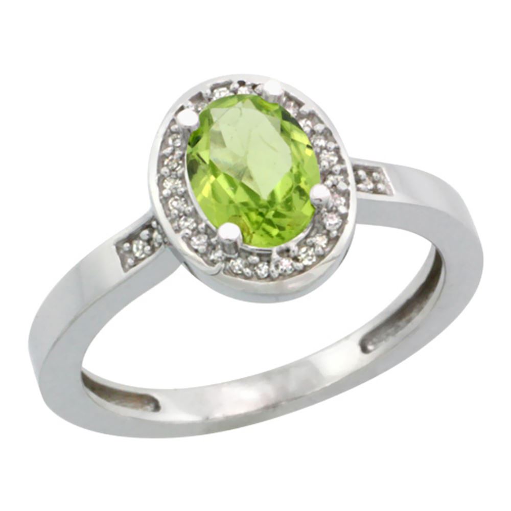 REF-37R9H - SKU: SC-CW411150 ---- 1.15 CTW Peridot & Diamond Ring 14K White Gold