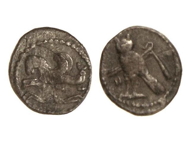 1/15 Shekel. - 360-332 a.C. - TIRO. FENICIA. - Anv.: Hipocampo a izquierda. Rev.: Lechuza a izquierda. 0,60 grs. AR. Pátina oscura. Se-5916. MBC. - -