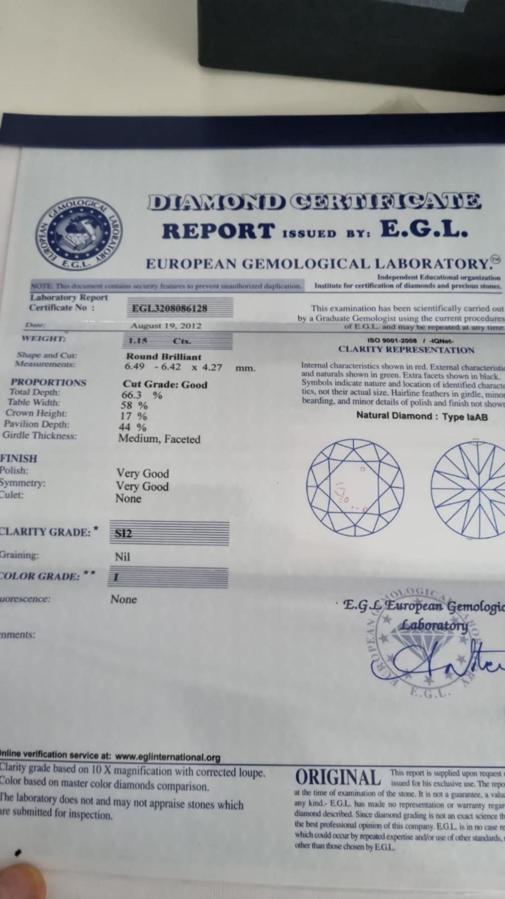 1.15 ct, Color I/SI2 EGL Graded Diamond