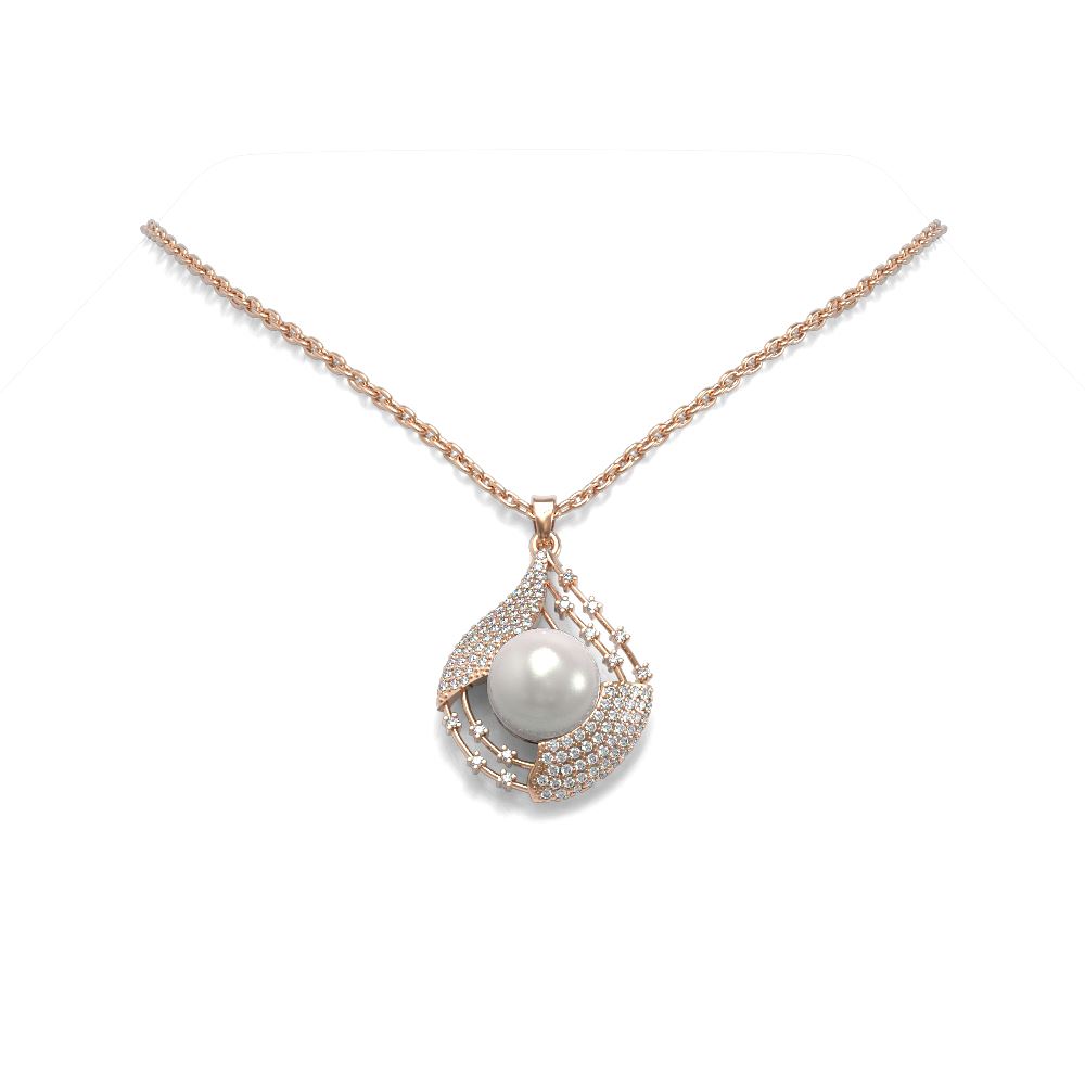 REF-164K8Y - SKU: 55326 ---- 1.15 ctw Diamond & Pearl Necklace 18K Rose Gold