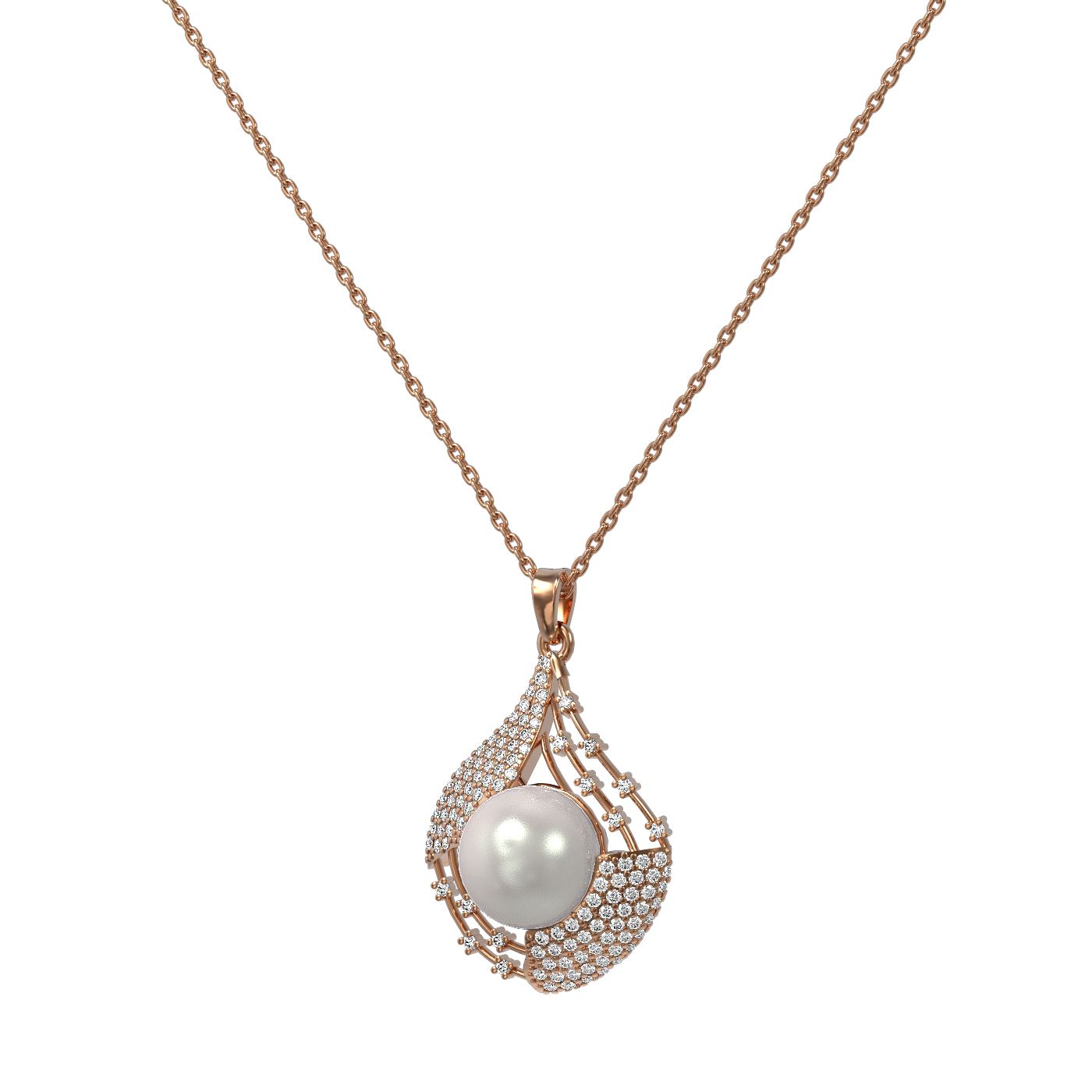 SKU: 55326 ---- 1.15 ctw Diamond & Pearl Necklace 18K Rose Gold