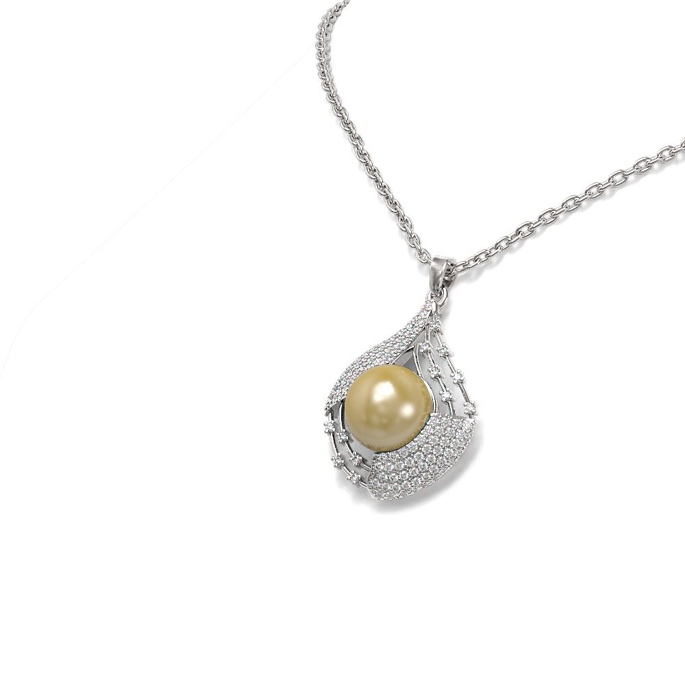 REF-164G8W - SKU: 55319 ---- 1.15 ctw Diamond & Pearl Necklace 18K White Gold