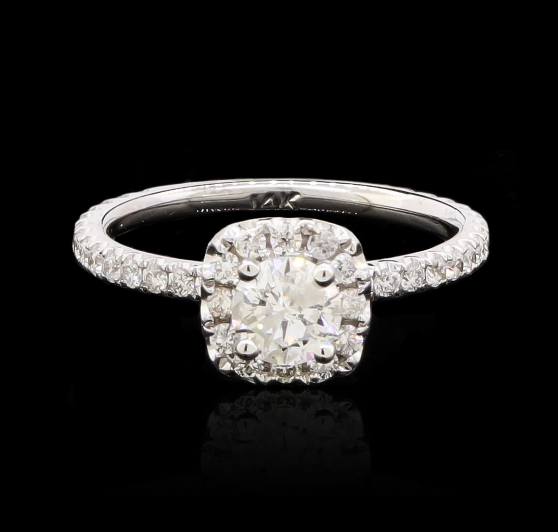 One electronically tested 14KT white gold ladies cast diamond unity ring with a bright polish finish. The featured diamond is set within a diamond bezel supported by diamond ribbon shoulders, completed by a one millimeter wide band. Identified with markings of "14K". Condition is new, good workmanship. Containing: One prong set round brilliant cut diamond, measuring 5.20 - 5.20 x 3.12mm (depth est.), 2.00.%. GTCF approximate weight of 0.53ct. Graded in the setting. Clarity: I-2. Color: 60.0%. Table 61.5%. Forty-Two prong set round brilliant cut diamonds, measuring 1.50 - 1.50 x 0.90mm (depth est.) approximate total weight of 42 Stones = 0.62ct. Graded in the setting. Clarity: SI-1 to I-1. Color: G - I. Total Weight of Diamonds 1.15ct. Total Weight of Ring 2.60gm. AIG Appraised at $4,655.00.