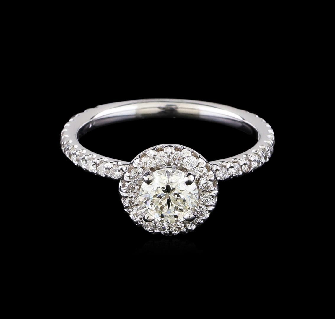 One electronically tested 14KT white gold lady's cast wedding ring with a basket halo with a bright polish finish. The featured lady's ring has a shank measuring 2.0 millimeters in width. Identified with markings of "14K". Condition is new, good workmanship. Containing: One prong set round brilliant cut diamond, measuring 5.52 - 5.50 x 3.47mm (depth est.) , 5.00.%. GTCF approximate weight of 0.70 ct. Graded in the setting. Clarity: SI-3. Color: Good Forty-Six prong set round brilliant cut diamonds, measuring 1.40 - 1.30 x 0.84mm (depth est.) approximate total weight of 46 Stones = 0.45ct. Graded in the setting. Clarity: SI-1 to SI-2. Color: G - Good. Total Weight of Diamonds 1.15ct. Total Weight of Ring 2.90gm GAS Appraised.