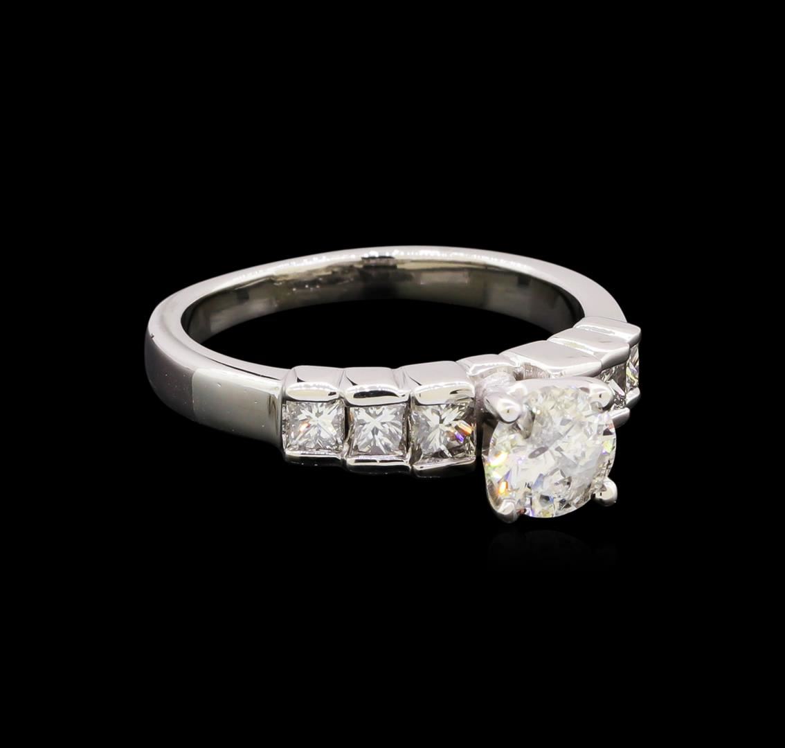 One electronically tested platinum lady's combination cast & assembled straight line wedding ring with a bright polish finish. The featured lady's ring has a shank measuring 2.05 millimeters in width. Identified with markings of "PT 950". Condition is new, good workmanship. Containing: One prong set round brilliant cut diamond, measuring 5.51 - 5.48 x 3.70mm (depth est.) approximate weight of 0.70ct. Graded in the setting. Clarity: I-1. Color: G - Good Six channel set princess cut diamonds, measuring 2.50 x 2.20 x 1.65mm (depth est.) approximate total weight of 6 Stones = 0.45ct. Graded in the setting. Clarity: VS-2 to SI-1. Color: G - Very Good. Total Weight of Diamonds 1.15ct. Total Weight of Ring 6.20gm. GAS Appraised at $5,365.00.