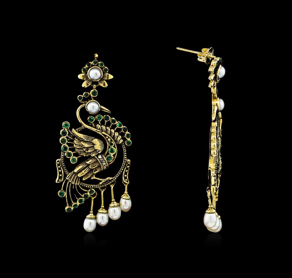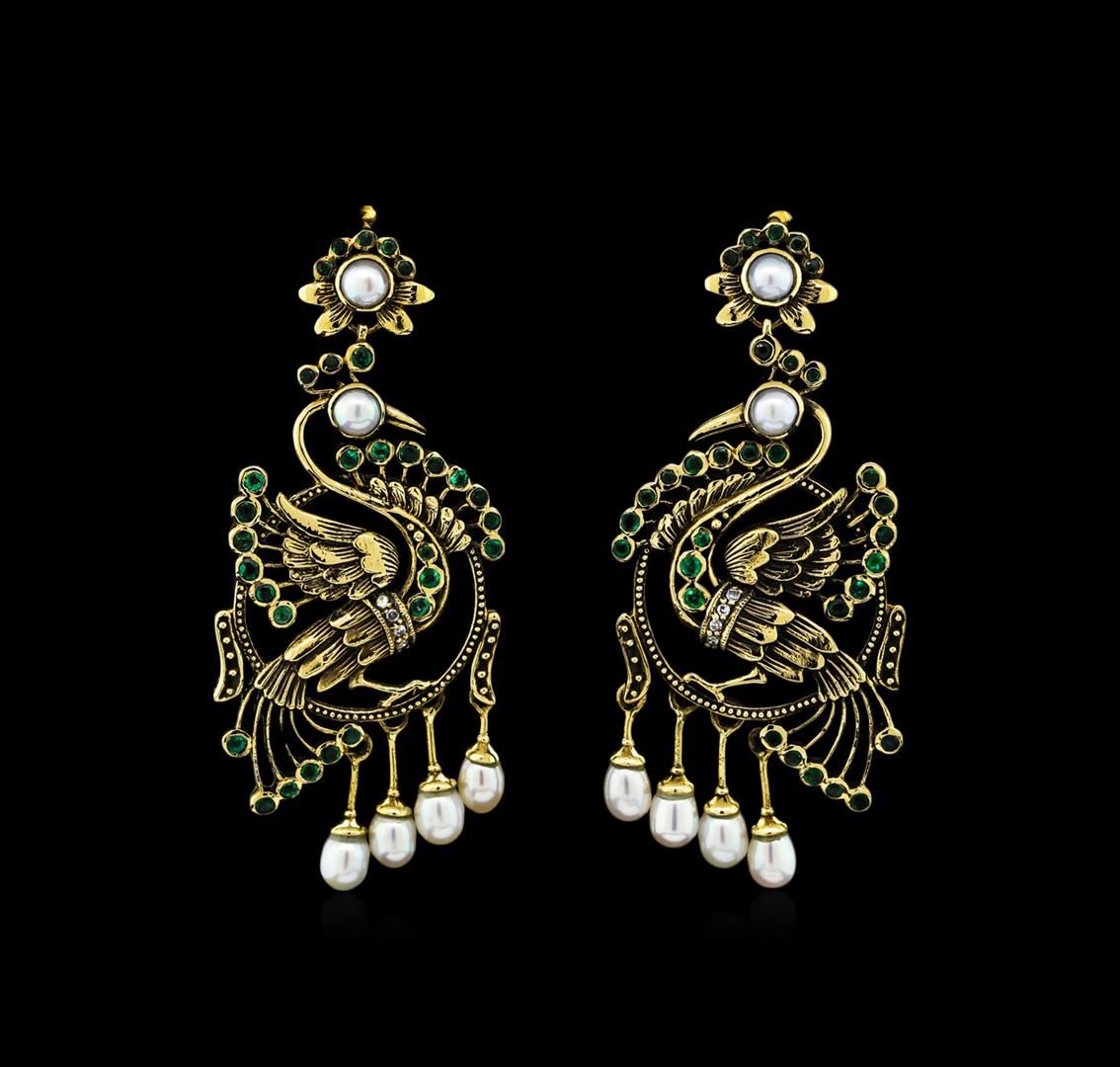 One pair of earrings featuring: 18KT yellow gold weighing 7.47 grams containing emeralds with a total weight of 1.15ct and diamonds with a total weight of 0.05ct.