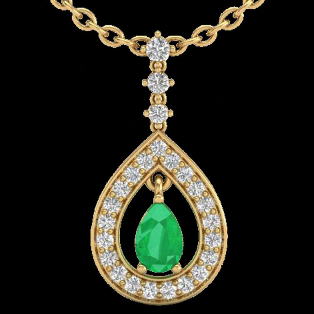 REF-49W3H - SKU: 23167 ---- 1.15 ctw Emerald & Micro Pave VS/SI Diamond Necklace 14k Yellow Gold