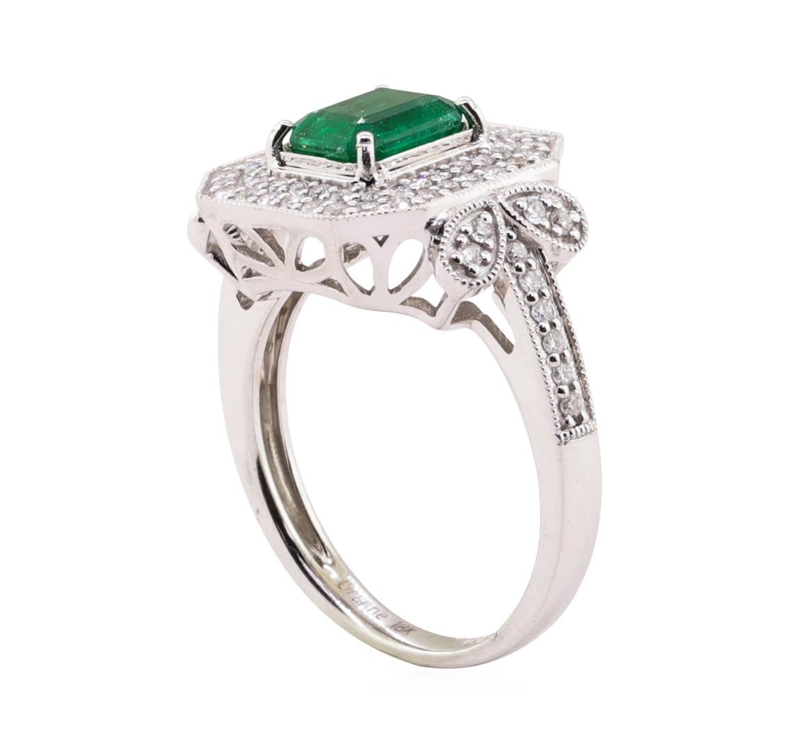One 1.15ct Emerald and Diamond Ring - 18KT White Gold. AIG certified. See Appraisal for more details. AIG Appraised.