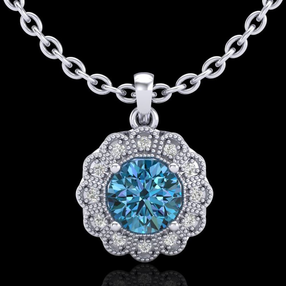 REF-218R2K - SKU: 37845 ---- 1.15 ctw Fancy Intense Blue Diamond Art Deco Necklace 18k White Gold