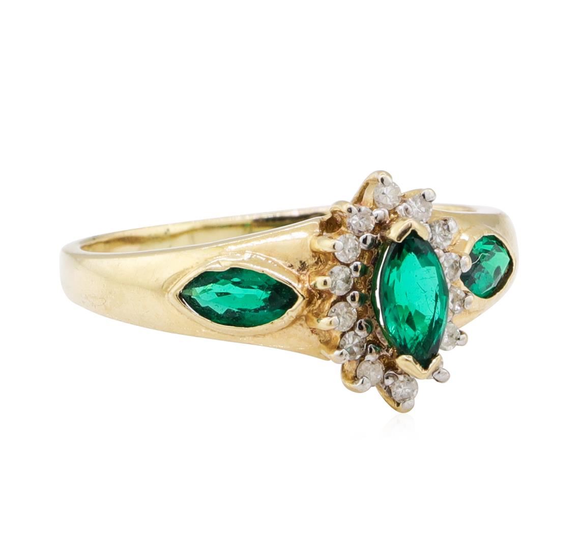 One ring featuring: 14KT yellow gold weighing 3.2 grams containing three lab created marquise cut emeralds weighing 1.00ctw and diamonds weighing 0.15ctw.