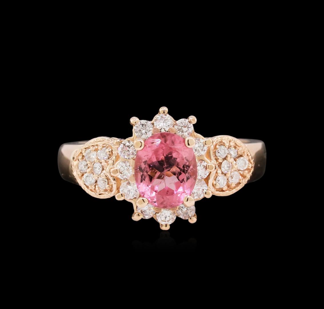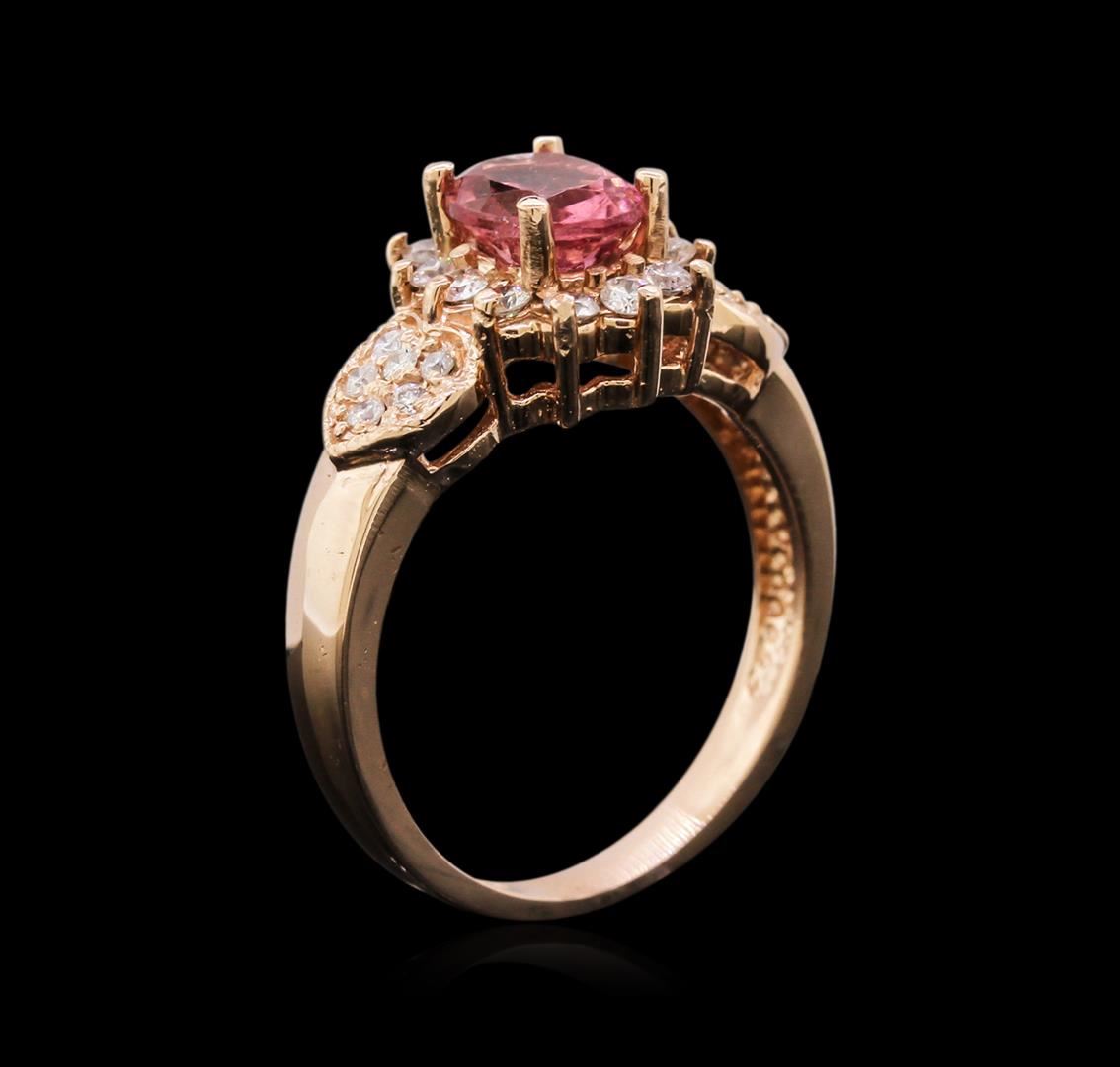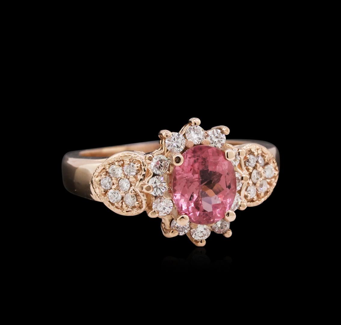 One ring featuring: 14KT rose gold weighing 4.56 grams containing one pink tourmaline with a total weight of 1.15ct and diamonds with a total weight of 0.39ct.