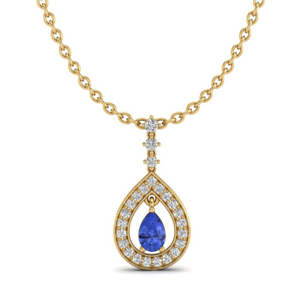 REF-49Y3X - SKU: 23174 ---- 1.15 ctw Tanzanite & Micro Pave VS/SI Diamond Necklace 14k Yellow Gold