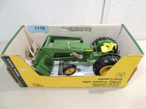 1/16 SCALE ERTL JOHN DEERE DIE CAST METAL TRACTOR & END LOADER. AS SHOWN. VIEW PICTURE FOR DETAIL.