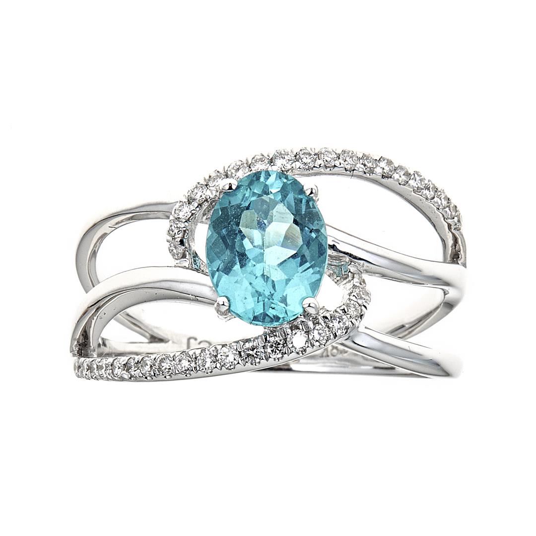 One ring featuring: 18KT white gold weighing 4.5 grams containing one marquise cut apatite with a total weight of 1.16 ct and diamonds weighing a total of 0.2 ctw.