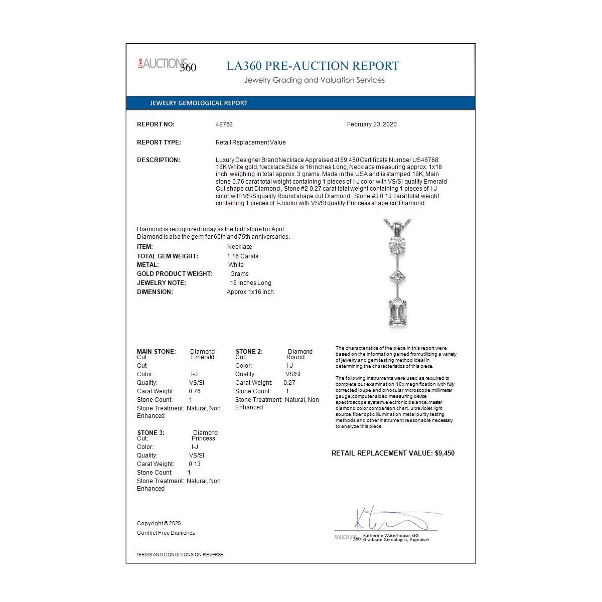 REF-214X9A - SKU: 48768 ---- 1.16 ctw Emerald Cut Diamond Designer Necklace 18K White Gold