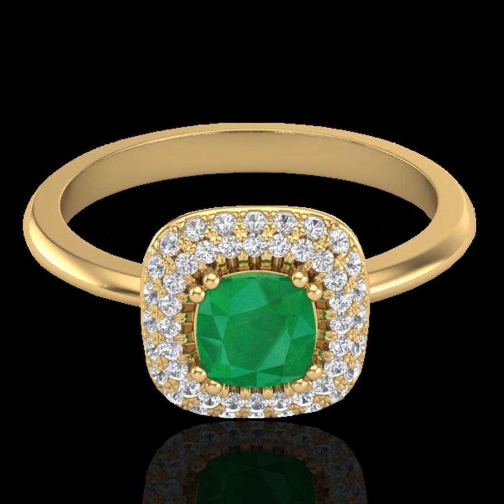 REF-80M2G - SKU: 21029 ---- 1.16 ctw Emerald & Micro VS/SI Diamond Ring Halo 18k Yellow Gold